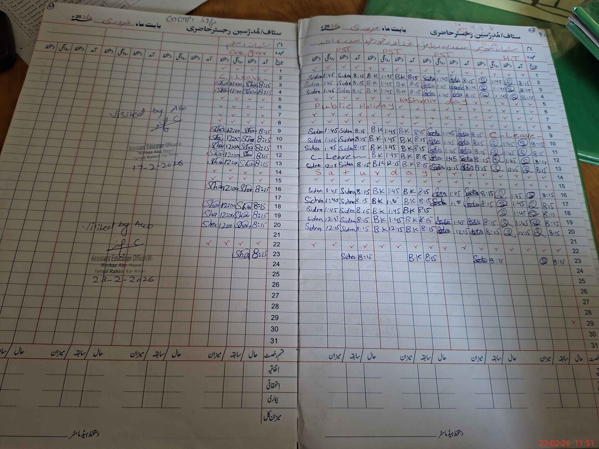 | Attendance Register | Head Teacher | MEA with School | Visit Proof |