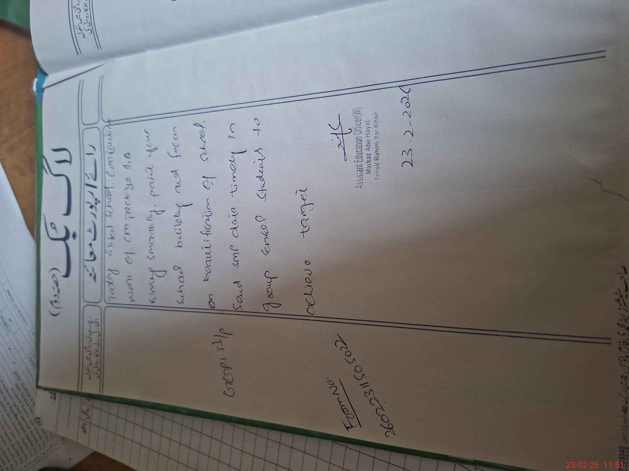 | Certified that this School was Inspected by the Undersigned MEA/DMO Today and the Information Stated Above is as Per Record. | |||||