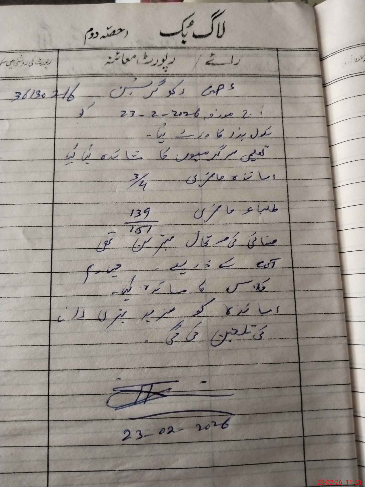 | Monitoring Date: 23-02-2026 | Start Time: 23-02-2026 11:32 AM | End Time: 23-02-2026 11:53 AM | Name of MEA: Sa**** Hu**** | |