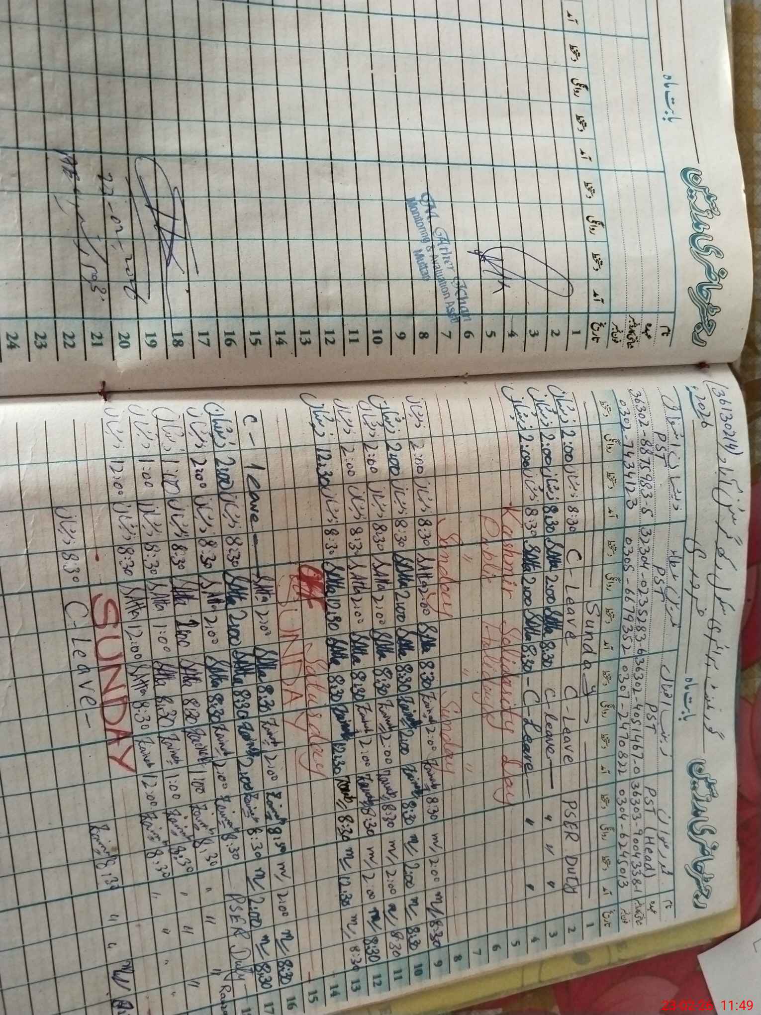 | CNIC | Full Name | Designation | R/C | Absence During Last Calender Month |