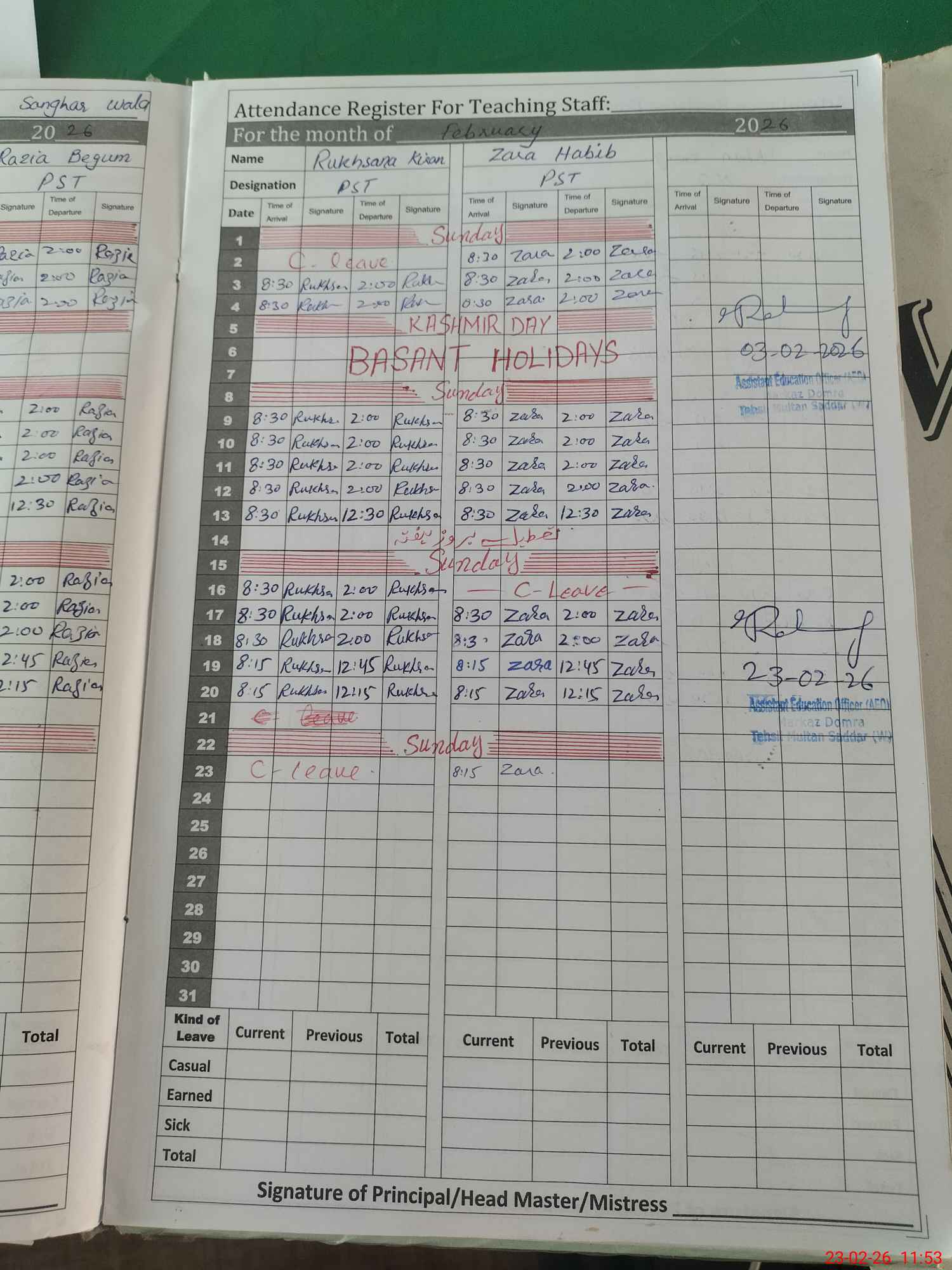 | Name: Za**** Ha**** Designation: (School Headmaster's/Headmistress's) HEAD MISTRESS Phone/Cell Number: 03**** |