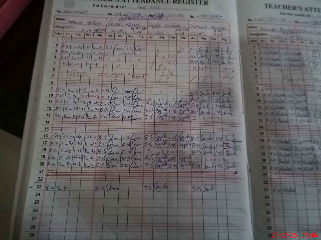 | CNIC | Full Name | Designation | R/C | Absence During Last Calender Month |