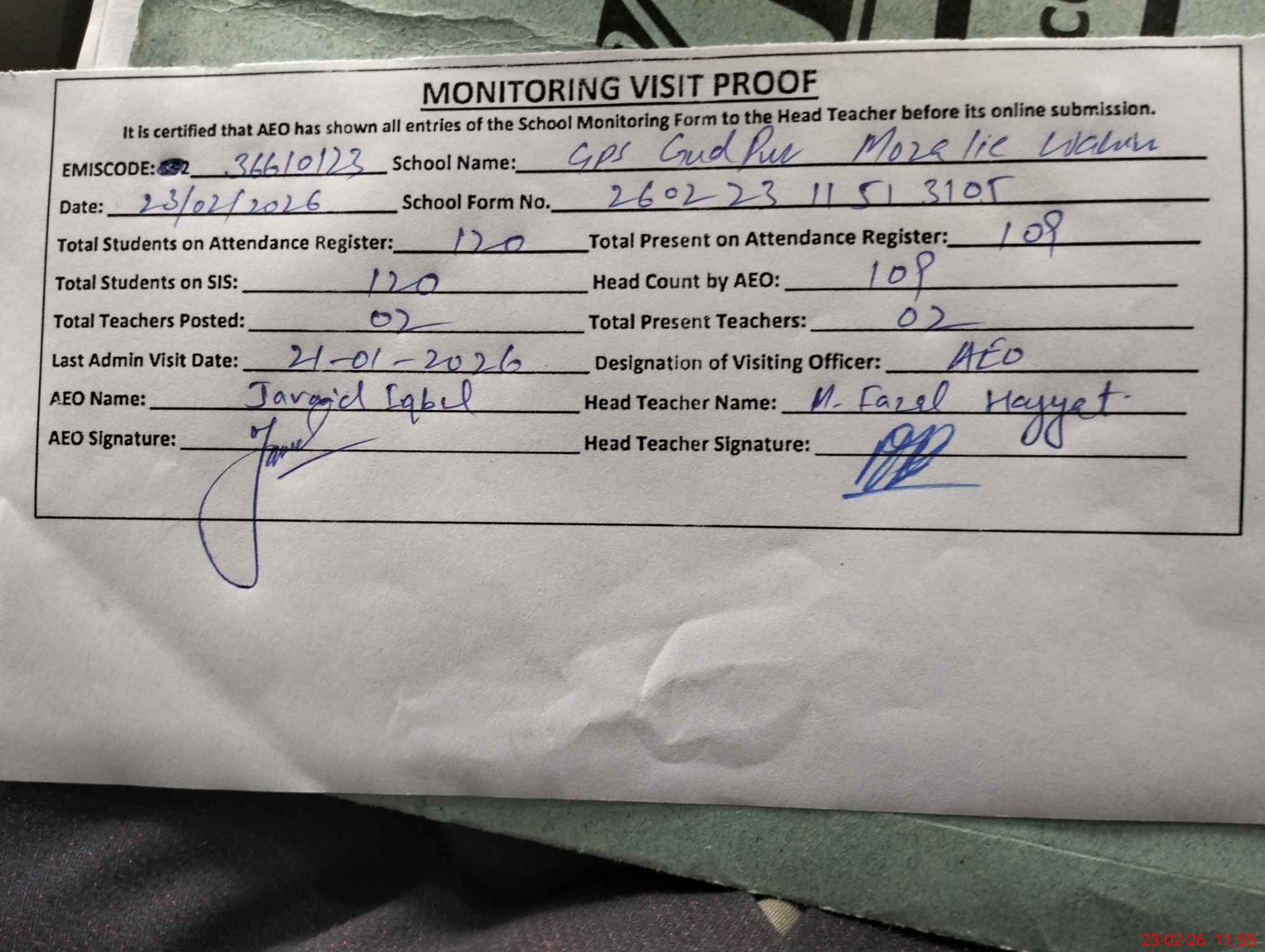 | EMIS Code: 36610123 | Name of School: GPS GUDPUR MOUZA LY WAHIN | |||