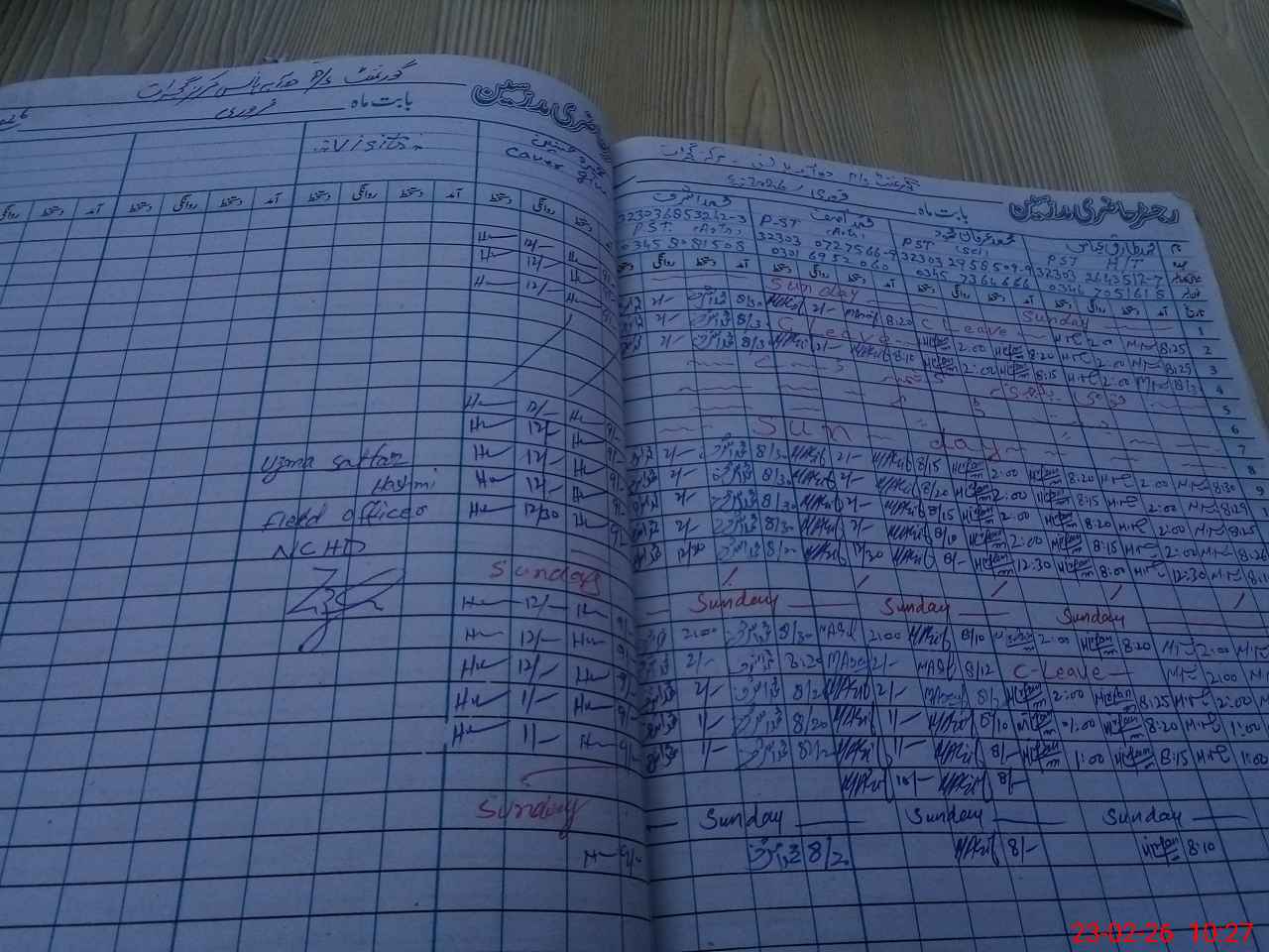| CNIC | Full Name | Designation | R/C | Absence During Last Calender Month |