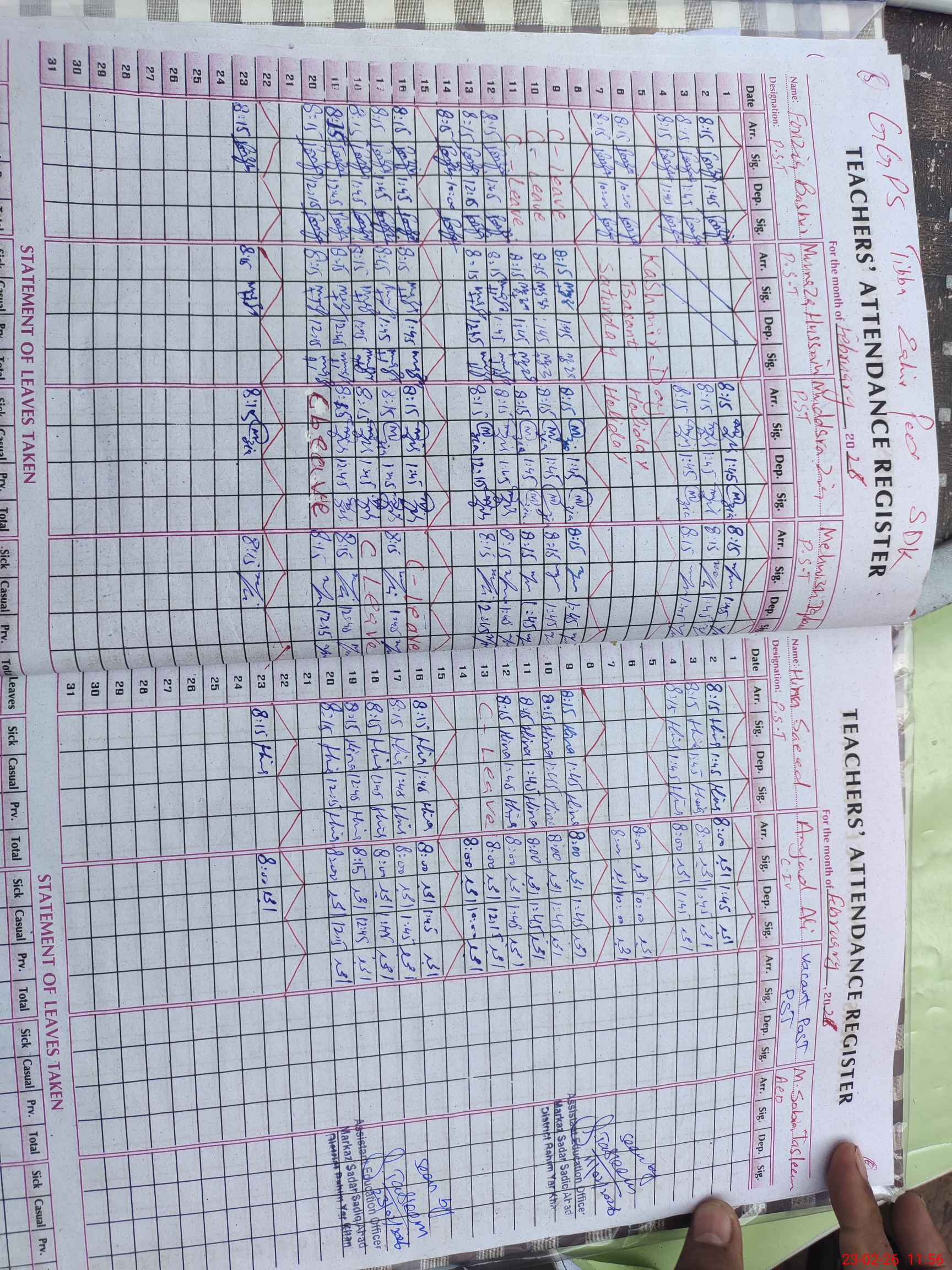 | Attendance Register | Head Teacher | MEA with School | Visit Proof |