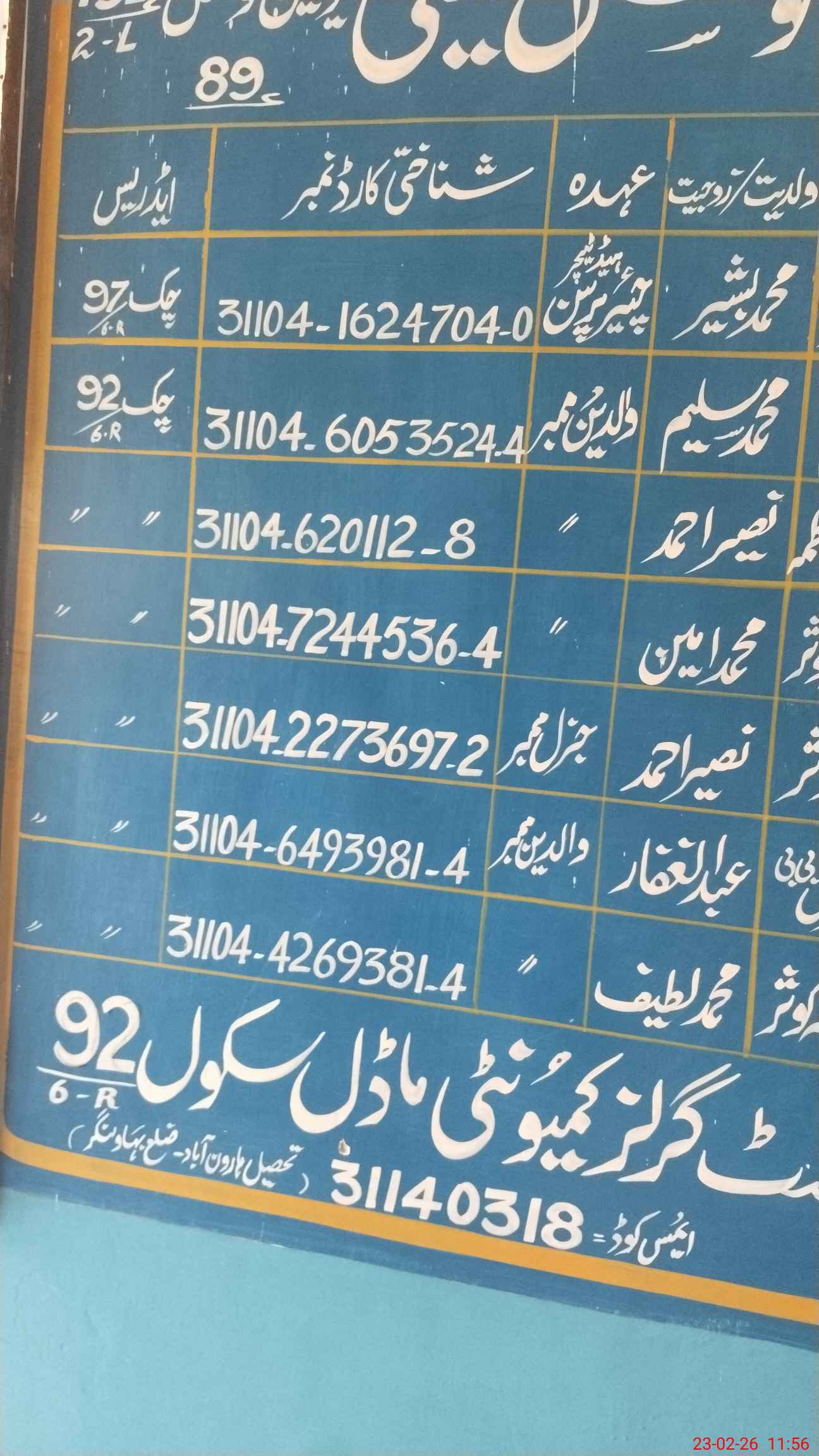 | EMIS Code: 31140318 | Name of School: GGCMS 92/6-R HAROON ABAD | |||