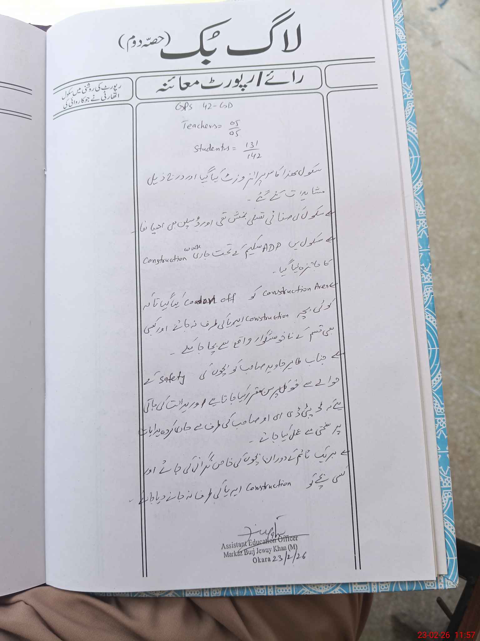 | Certified that this School was Inspected by the Undersigned MEA/DMO Today and the Information Stated Above is as Per Record. | |||||