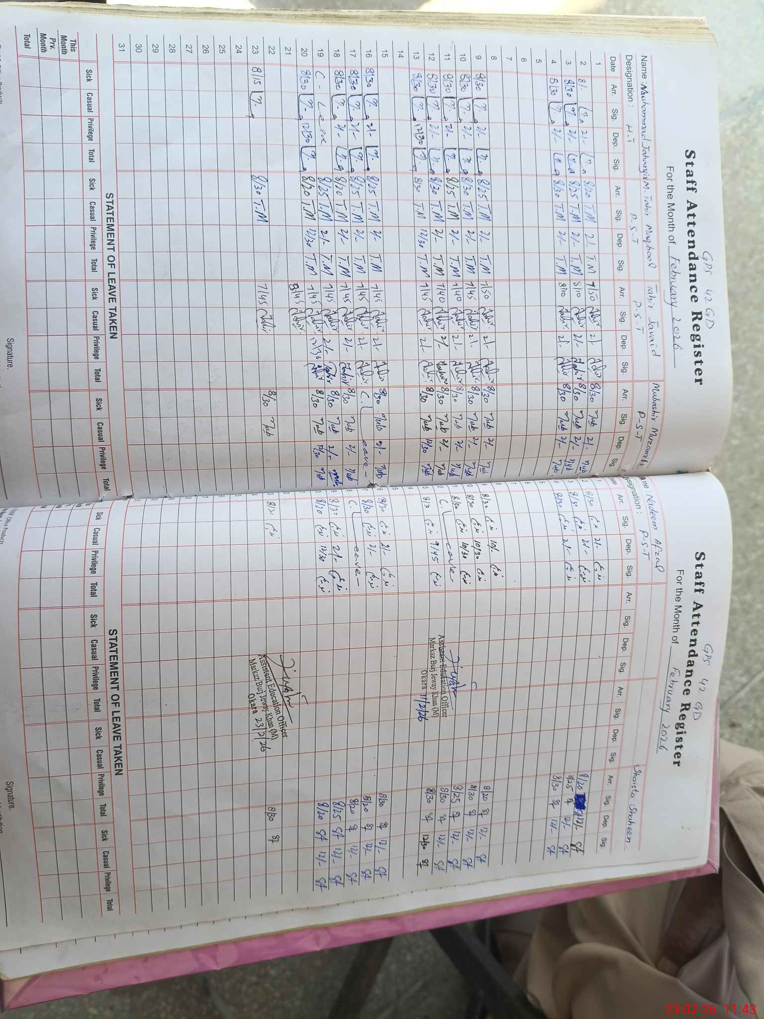 | CNIC | Full Name | Designation | R/C | Absence During Last Calender Month |