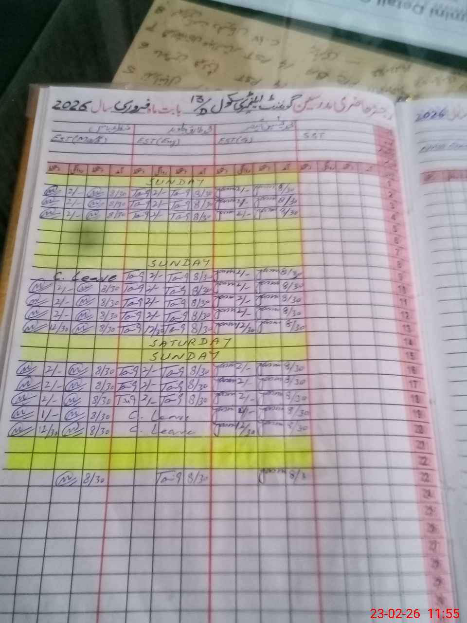 | CNIC | Full Name | Designation | R/C | Absence During Last Calender Month |