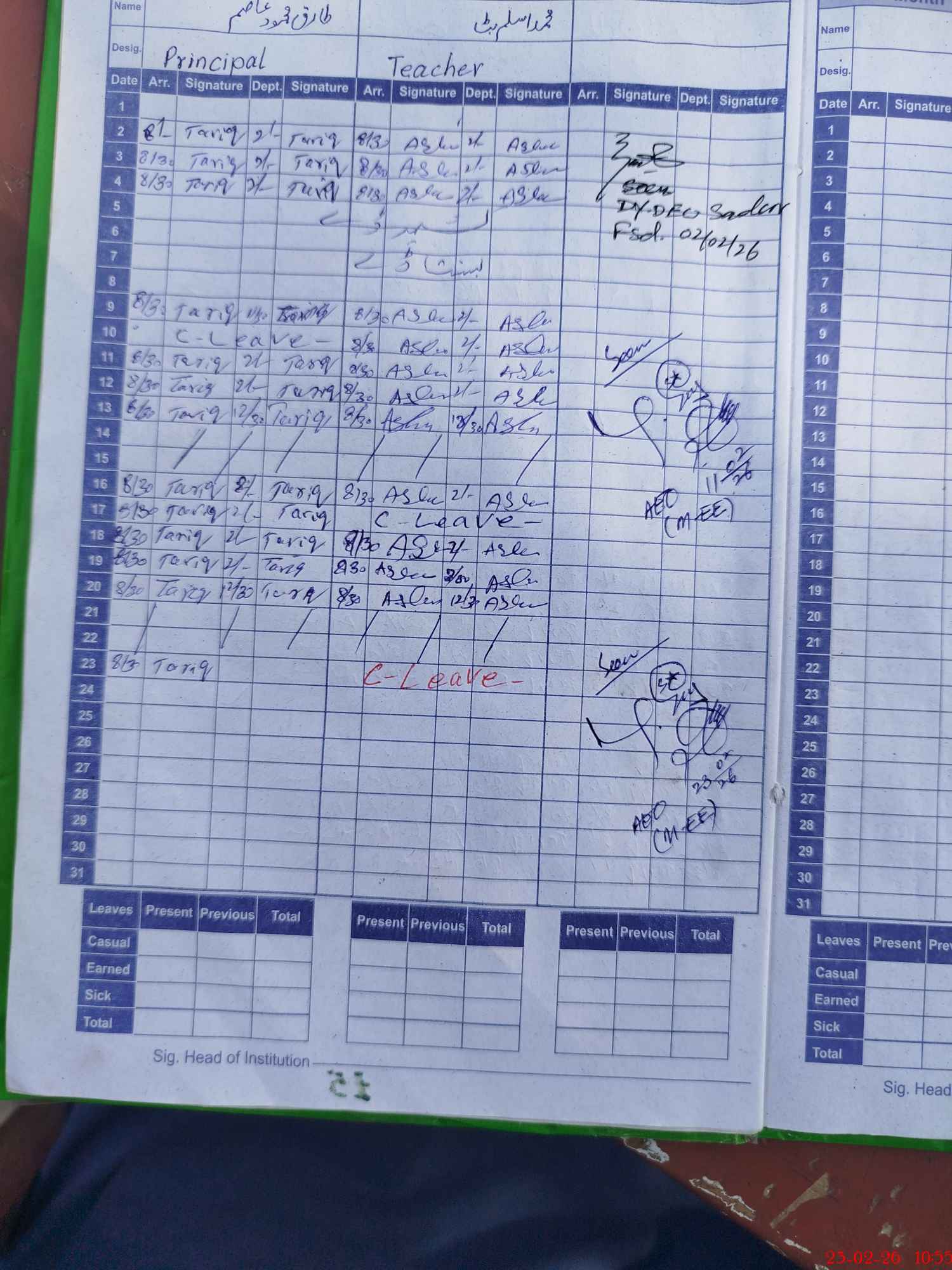 | Leave | Duty | Absent | Maternity | Medical | Ex- Pak |
