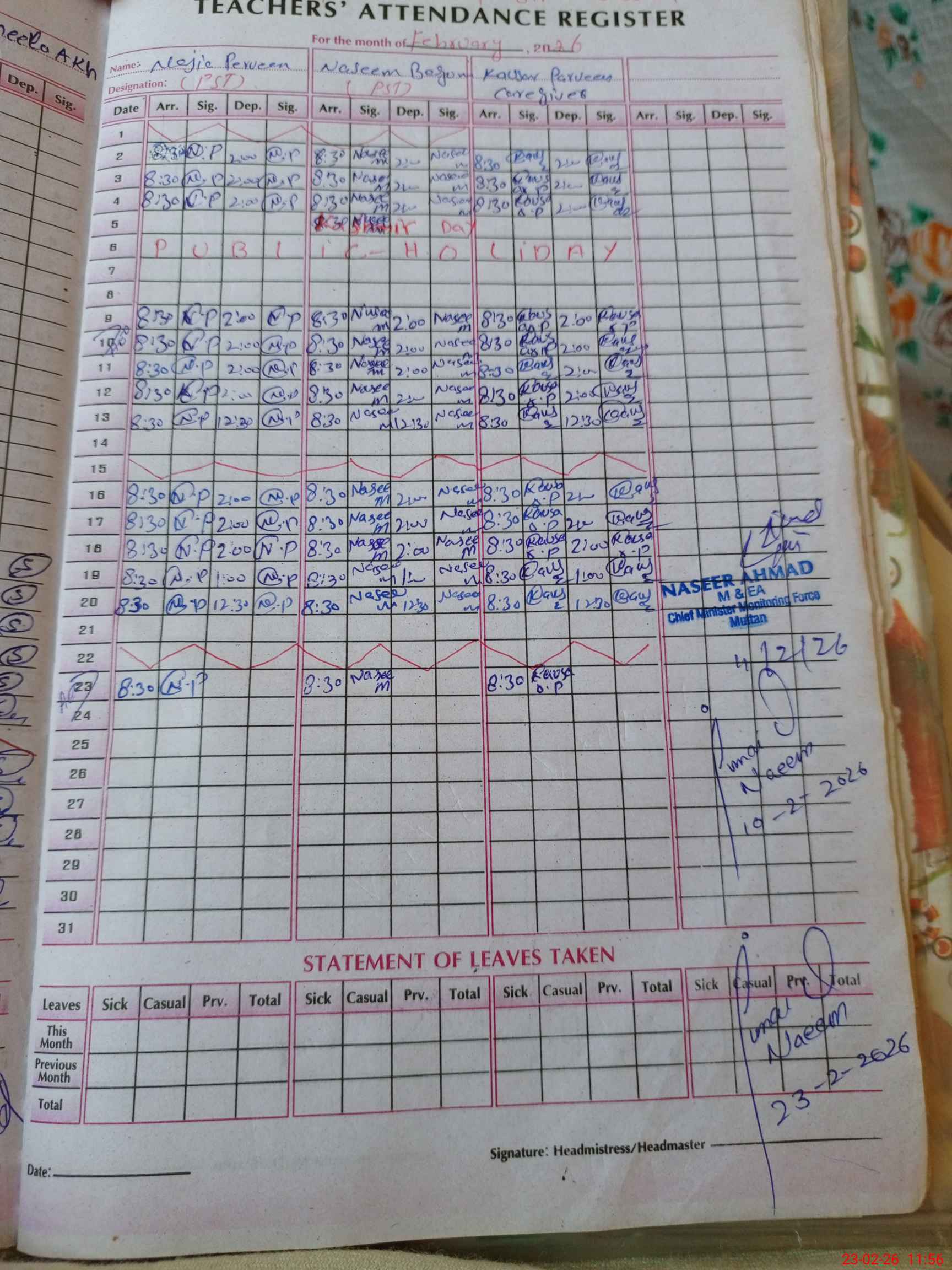| EMIS Code: 36120224 | Name of School: GGPS NOOR FAQIR WALA SHUJABAD | |||