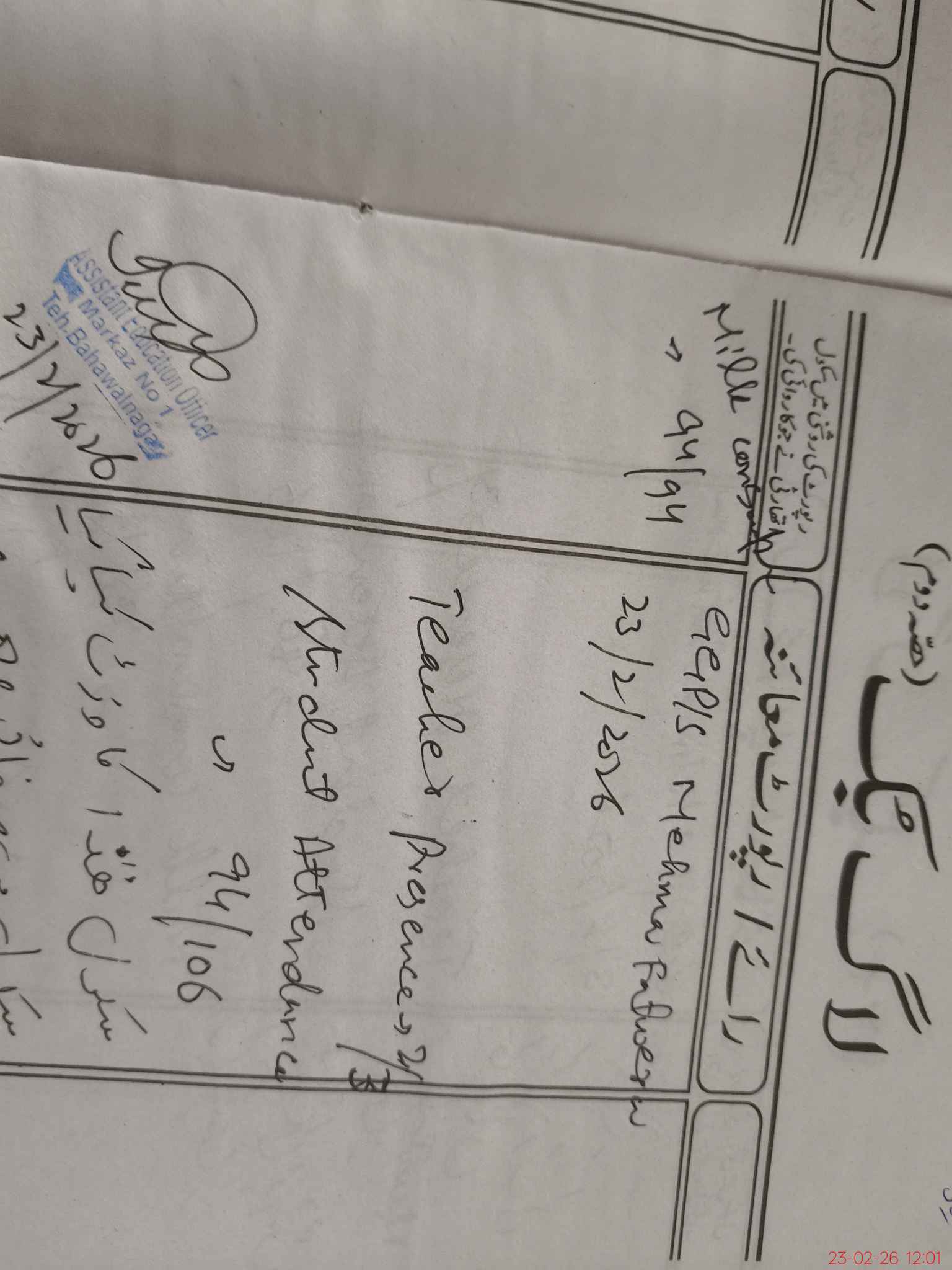 | Name: Ra**** Na**** Designation: (School Headmaster's/Headmistress's) PST Phone/Cell Number: 03**** |