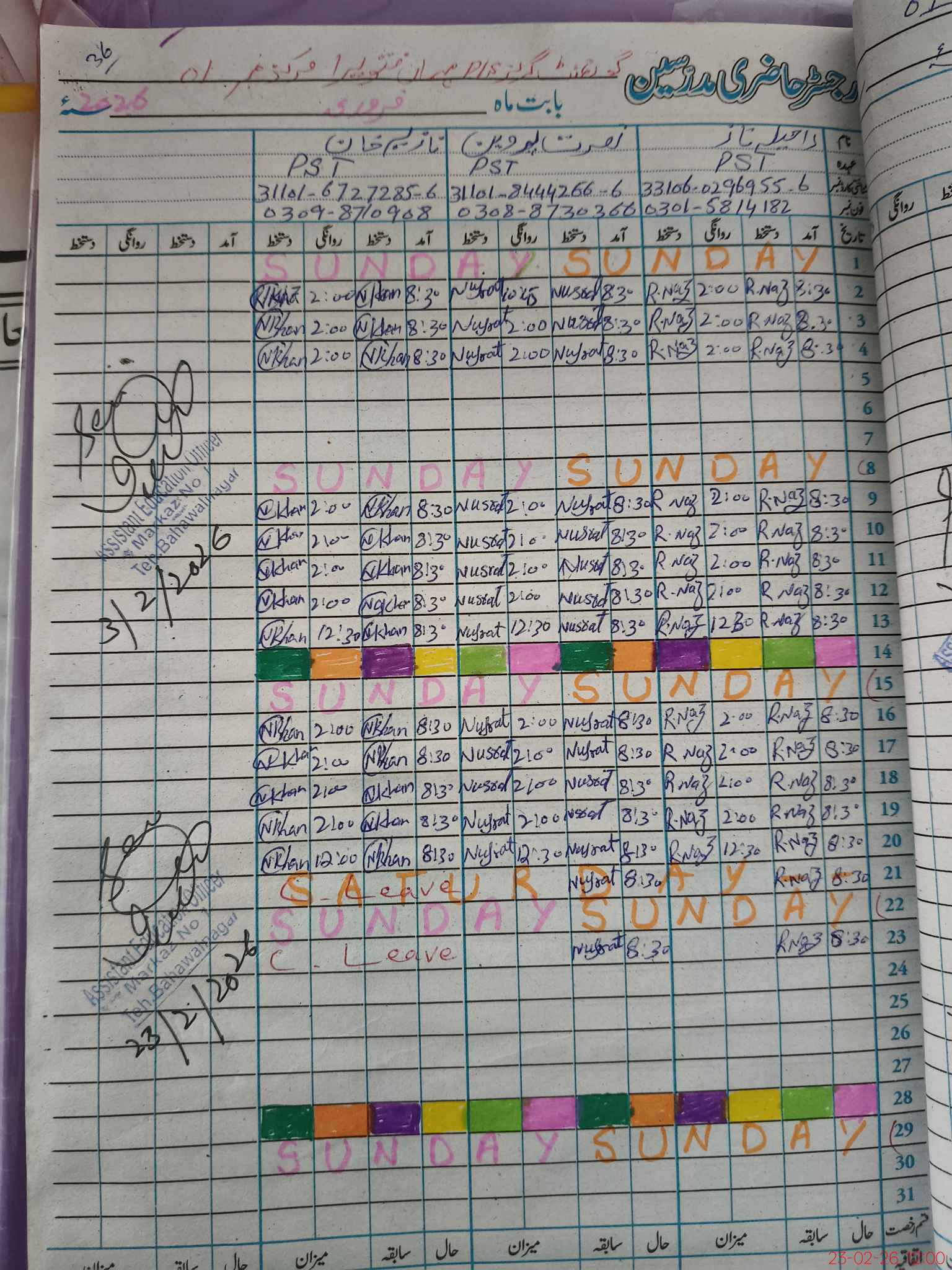 | 31**** | Na**** Kh**** | PST Arts | Regular | 0 | 0 | 0 | 0 | 0 | 0 | 0 | 0 | 0 | Casual |