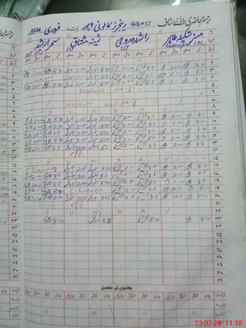 | 35**** | Fa**** Us**** | EST General Arts | Regular | 0 | 0 | 0 | 0 | 0 | 0 | 0 | 0 | 0 | Exam Duty |
