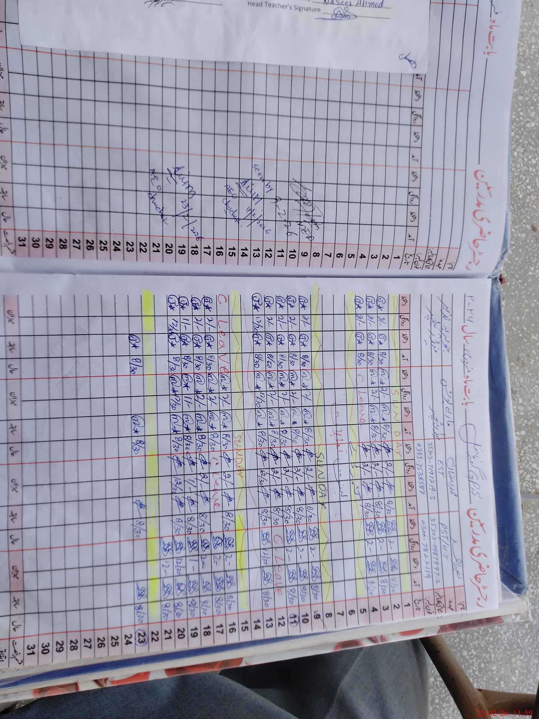 | Name: Na**** Ah**** Designation: (School Headmaster's/Headmistress's) ESE SC Math Phone/Cell Number: 03**** |