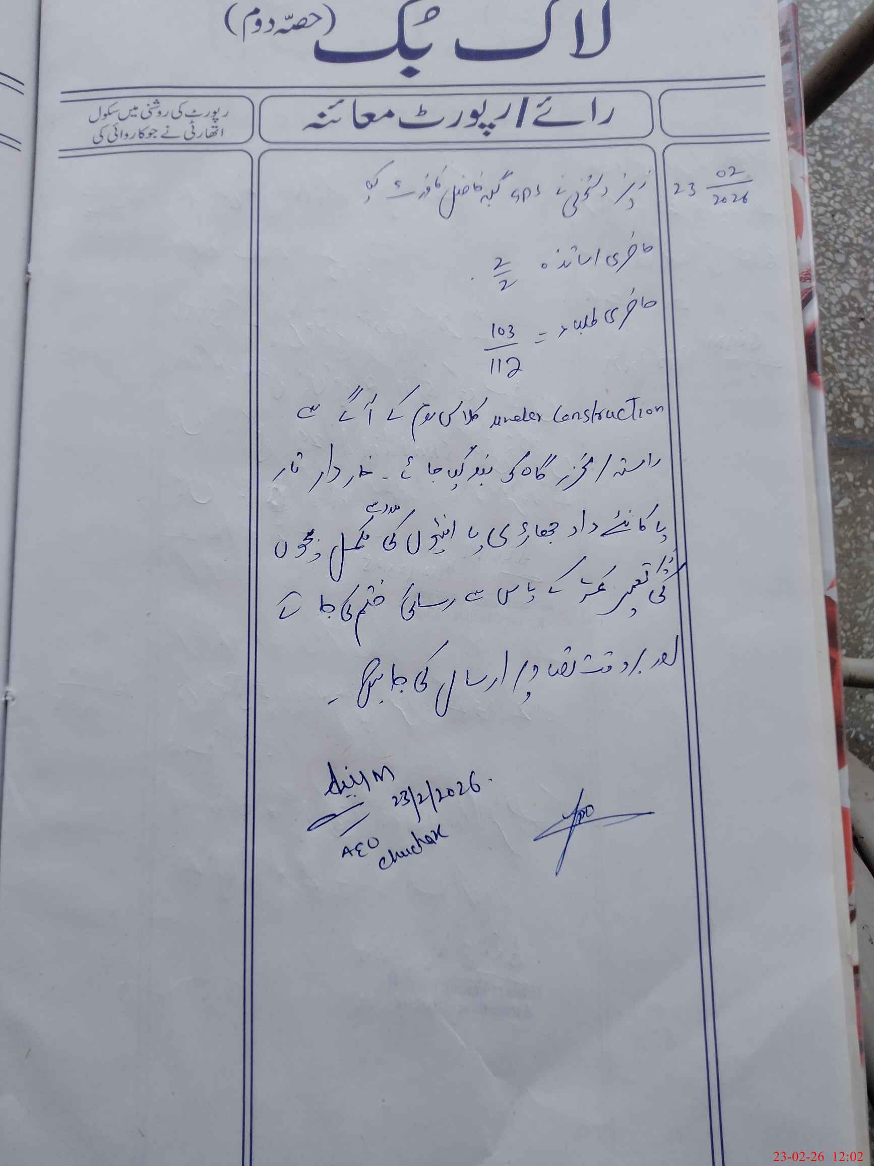 | Certified that this School was Inspected by the Undersigned MEA/DMO Today and the Information Stated Above is as Per Record. | |||||