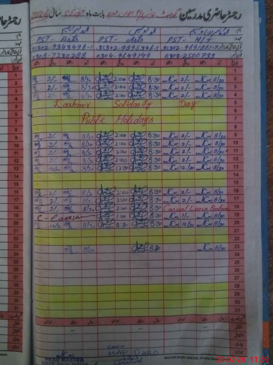 | Name: MU**** KA**** Designation: (School Headmaster's/Headmistress's) PST Phone/Cell Number: 03**** |