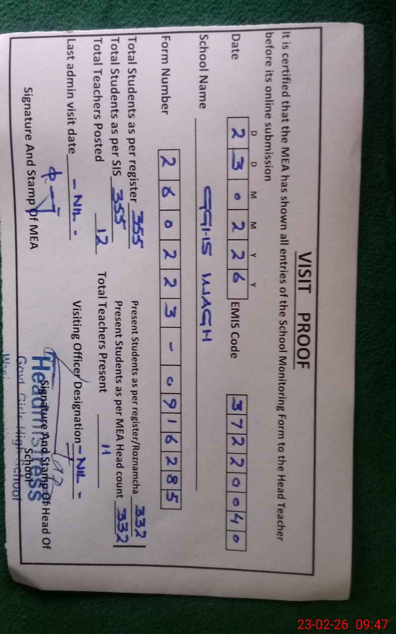 | EMIS Code: 37220040 | Name of School: GGHS WAG | |||