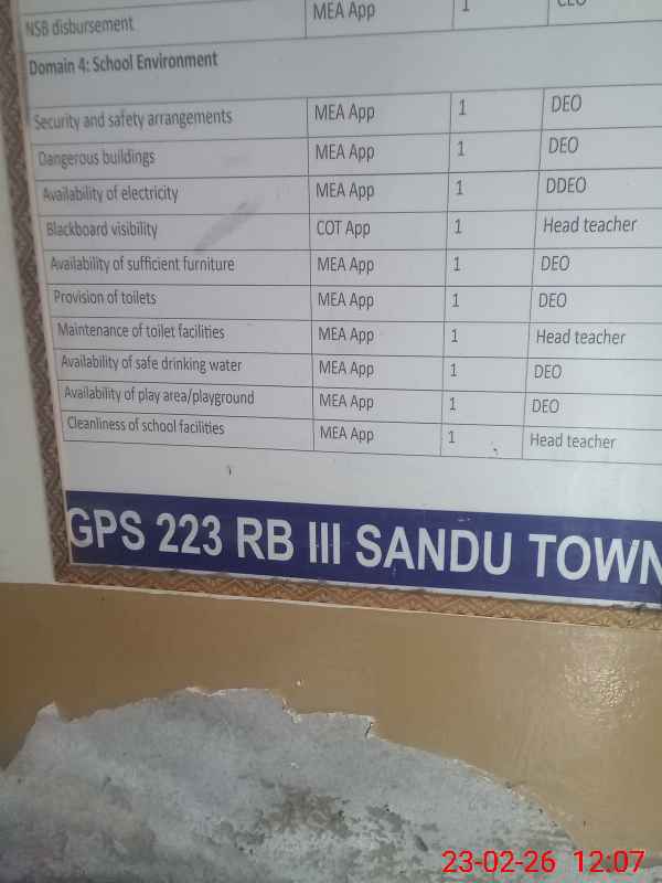 | EMIS Code: 33110024 | Name of School: GPS 223 RB SANDU TOWN FSD | |||