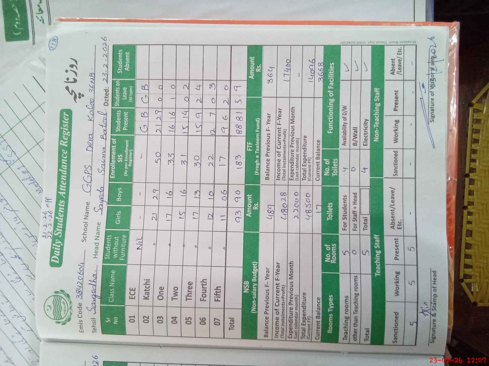 | EMIS Code: 38420604 | Name of School: GGPS DAIRA KALOO CHAK NO.36 NB | |||