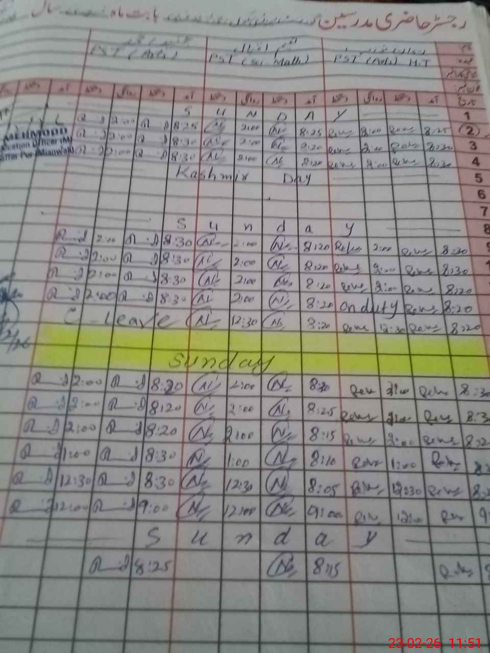 | Name: RE**** NA**** Designation: (School Headmaster's/Headmistress's) PST Phone/Cell Number: 03**** |