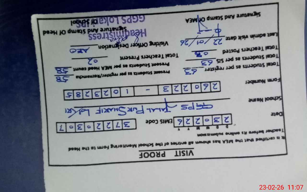 | EMIS Code: 37220307 | Name of School: GGPS JALIL PUR SHARIF LOKRI | |||