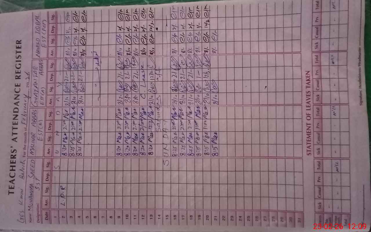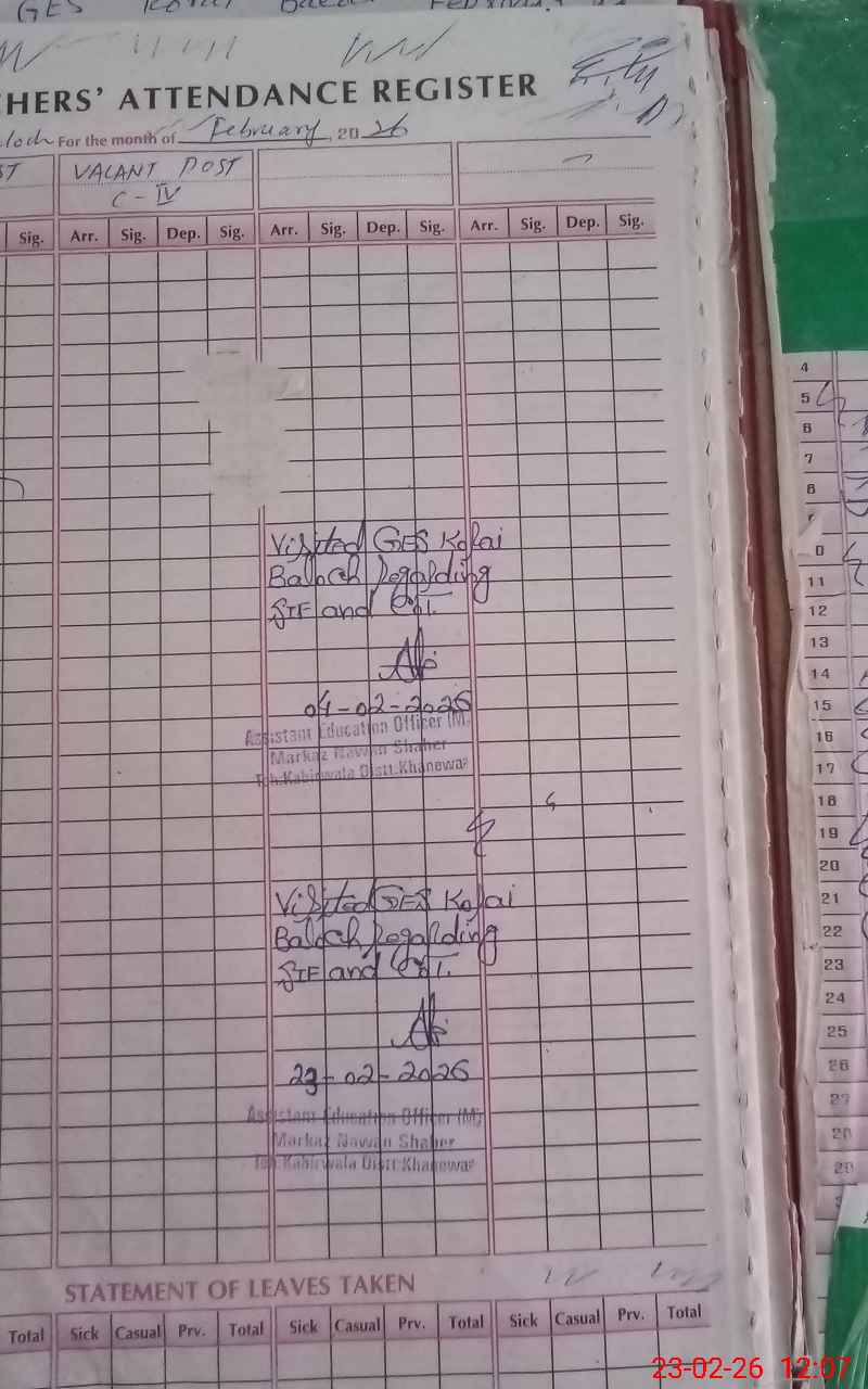 | EMIS Code: 36410052 | Name of School: GES KORAI BALOCH, KABIRWALA | |||