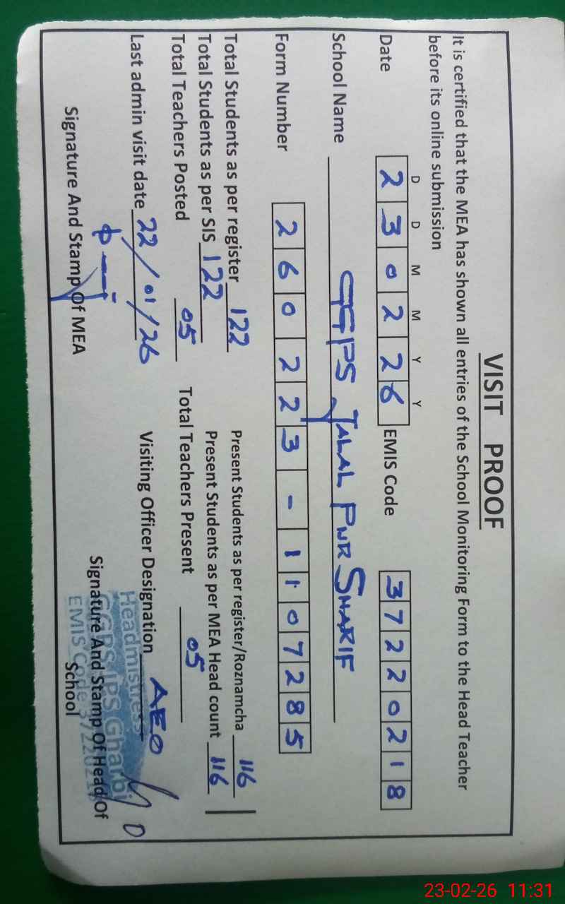 | EMIS Code: 37220218 | Name of School: GGPS JALAL PUR SHARIF GHARI | |||