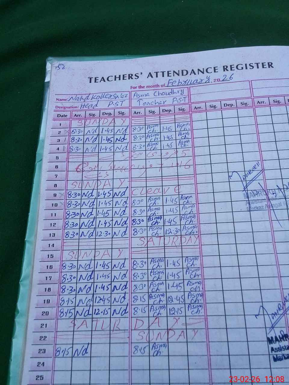 | Name: NA**** KO**** Designation: (School Headmaster's/Headmistress's) PST/PTC/JV Phone/Cell Number: 03**** |
