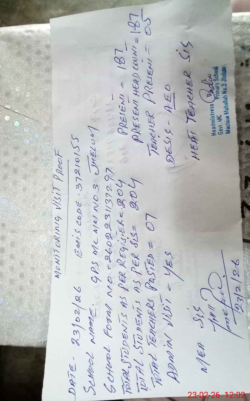 | EMIS Code: 37210155 | Name of School: GPS MC NO.3 MACHINE MOHALLAH | |||