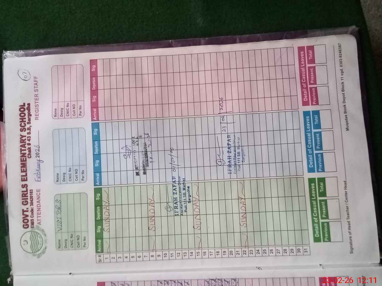 | Name: NA**** MA**** Designation: (School Headmaster's/Headmistress's) SST Phone/Cell Number: 03**** |