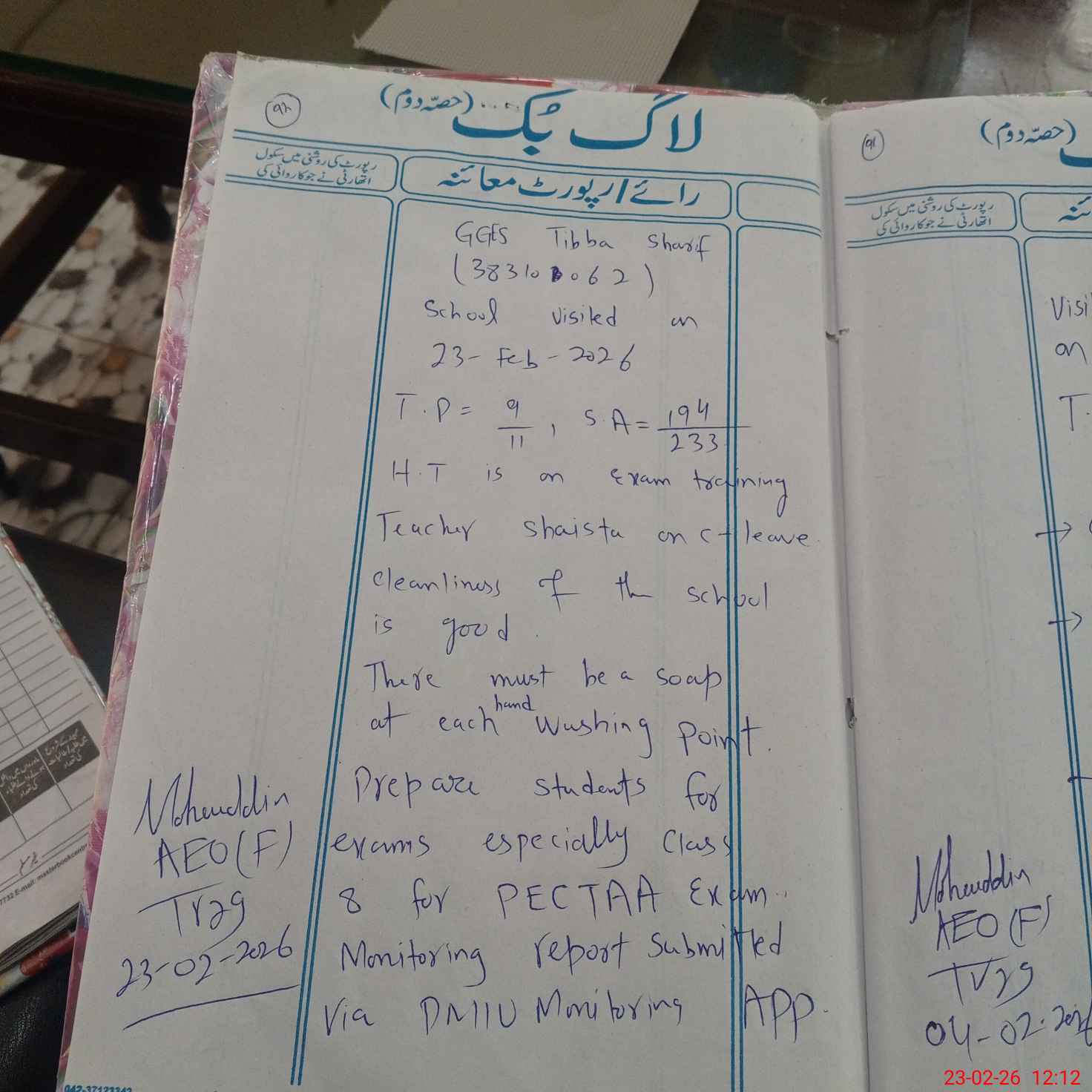 | Monitoring Date: 23-02-2026 | Start Time: 23-02-2026 11:40 AM | End Time: 23-02-2026 12:13 PM | Name of MEA: Mo**** udDi**** Kh**** | |