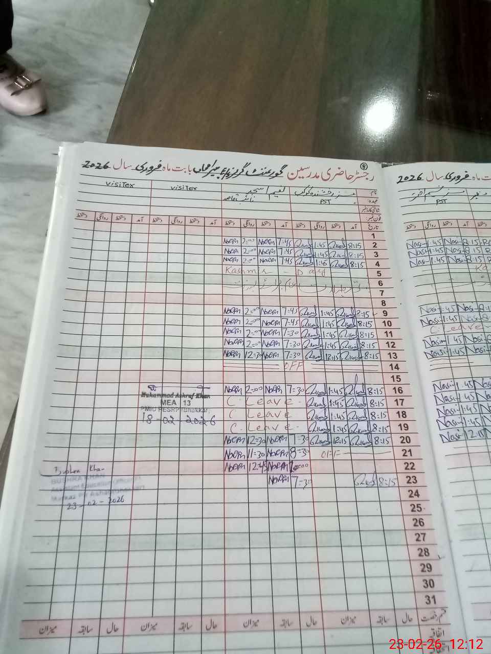 | Attendance Register | Head Teacher | MEA with School | Visit Proof |
