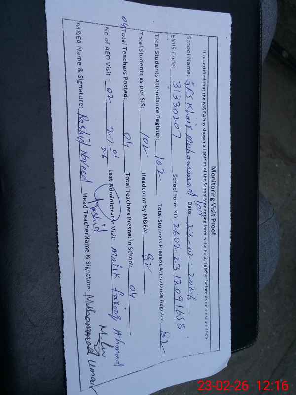 | EMIS Code: 31330207 | Name of School: GPS KHAIR MUHAMMAD LAR | |||