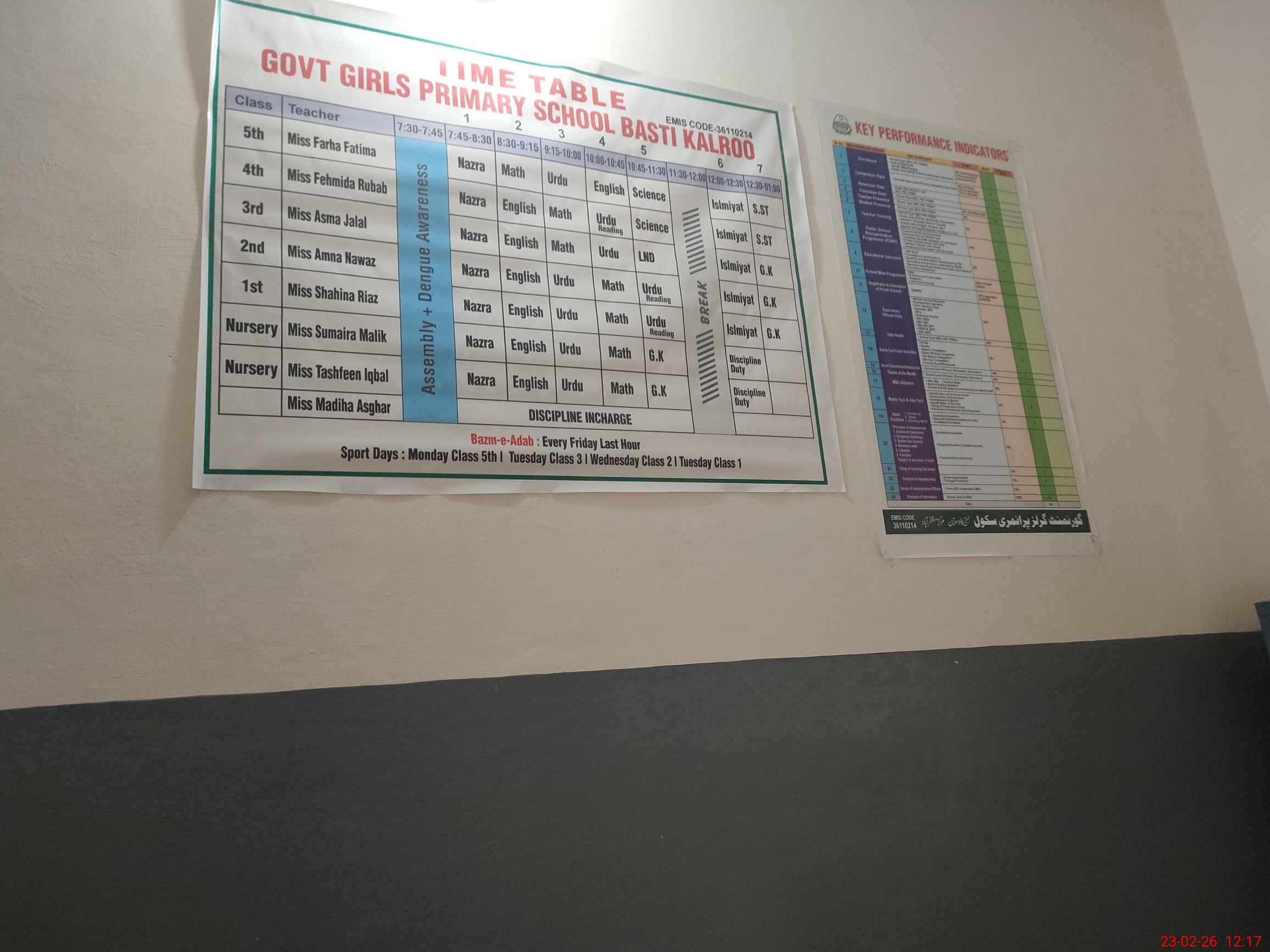 | EMIS Code: 36110214 | Name of School: GGPS BASTI KALRO MULTAN | |||