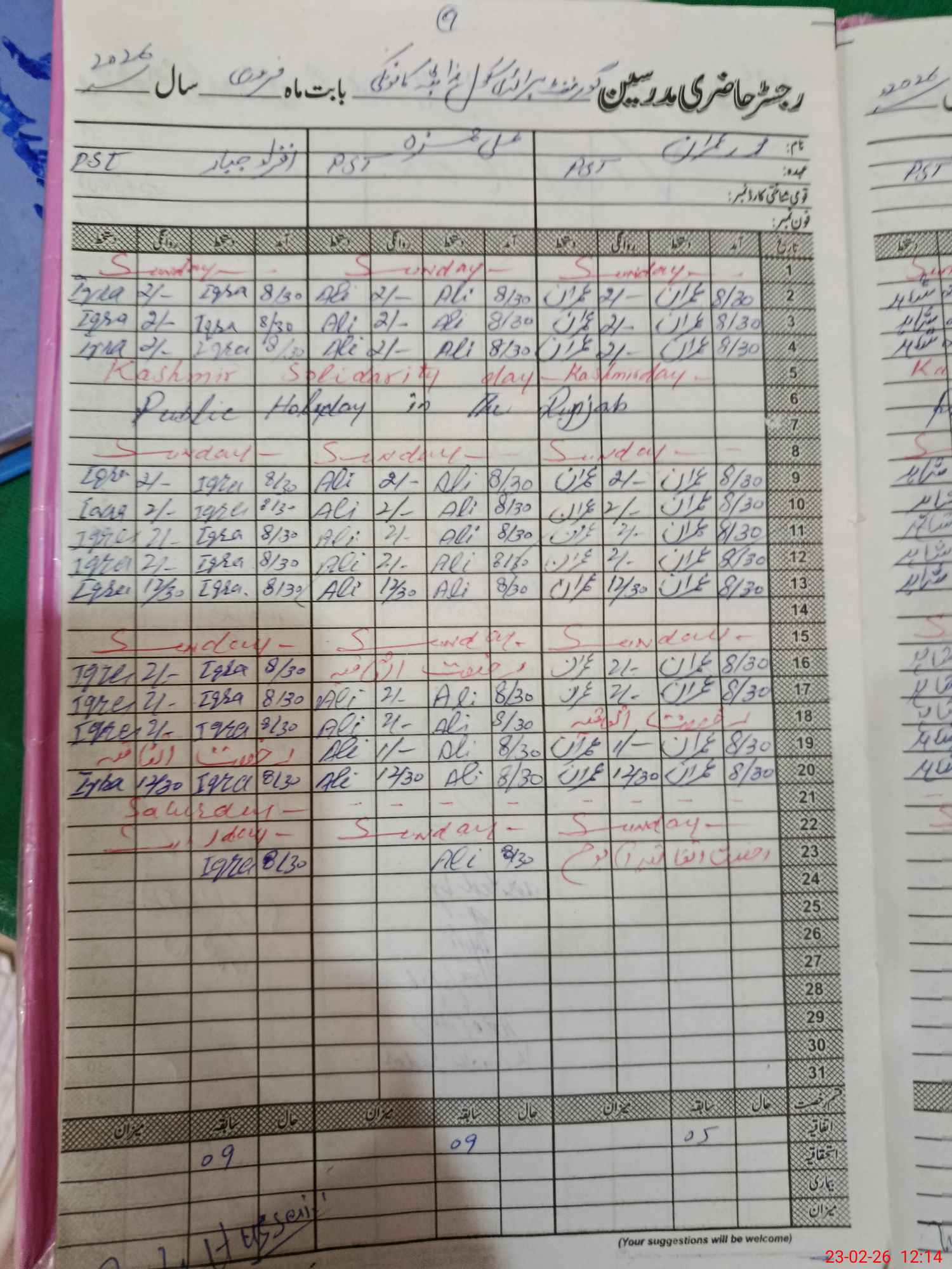 | Name: M.IS**** HU**** Designation: (School Headmaster's/Headmistress's) PST Phone/Cell Number: 03**** |