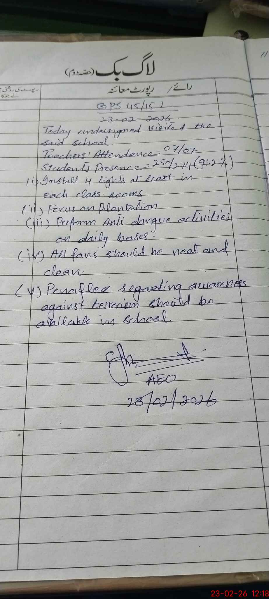 | Certified that this School was Inspected by the Undersigned MEA/DMO Today and the Information Stated Above is as Per Record. | |||||