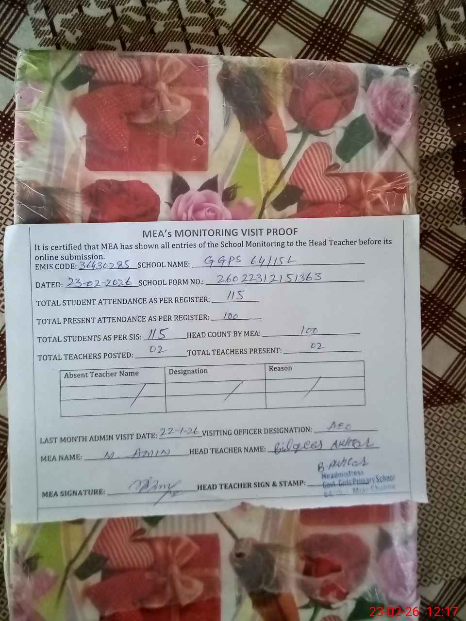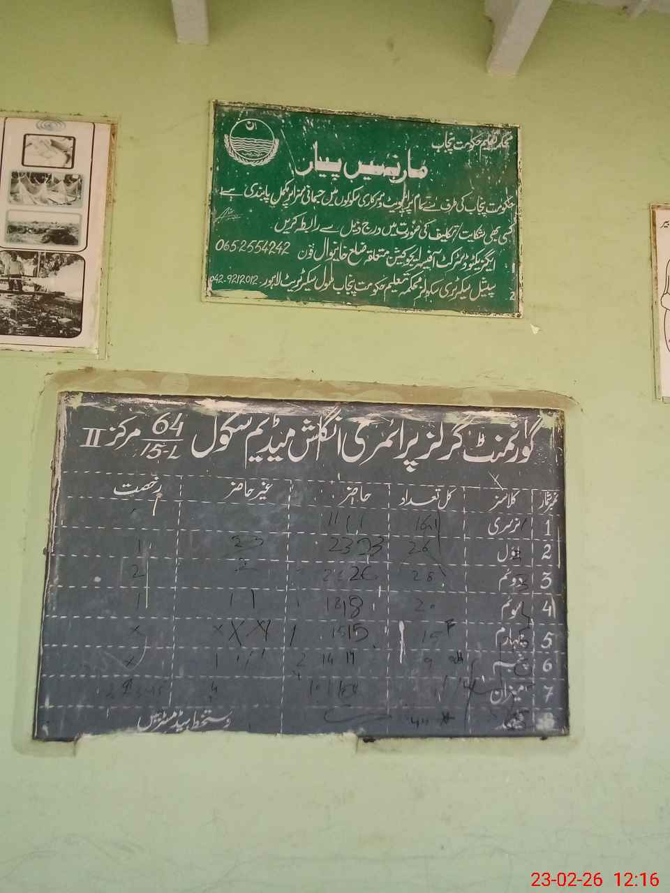 | EMIS Code: 36430285 | Name of School: GGPS 64/15-L MIAN CHANNU | |||