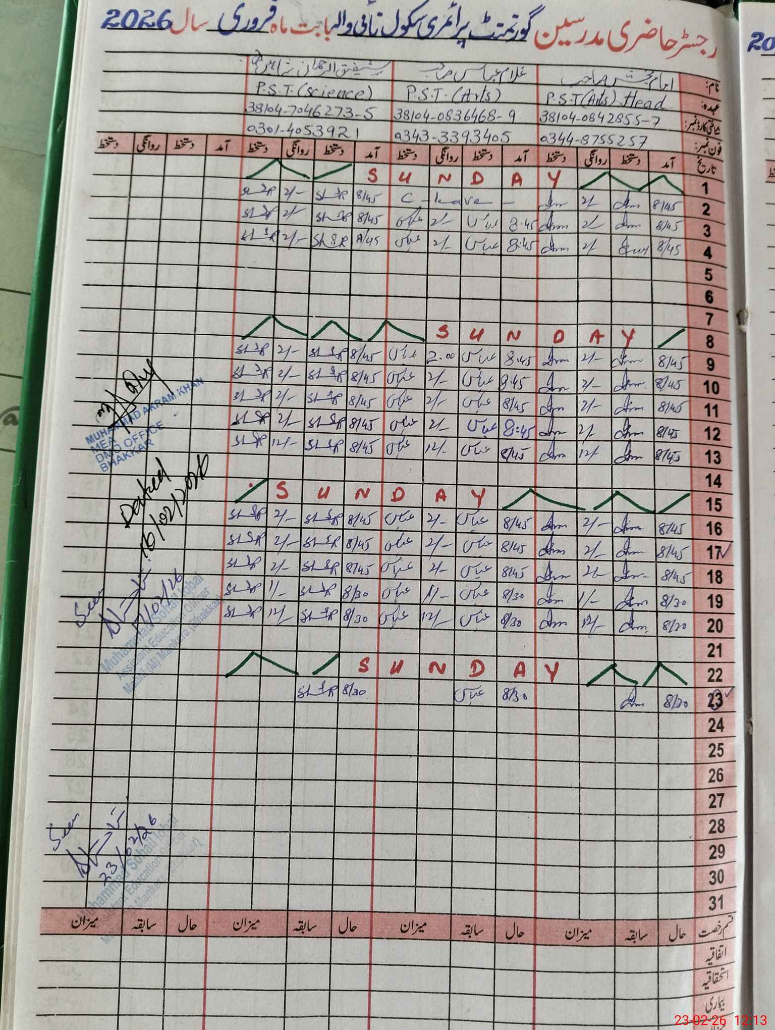 | Name: SU**** KH**** Designation: (School Headmaster's/Headmistress's) PTC/JV Phone/Cell Number: 03**** |