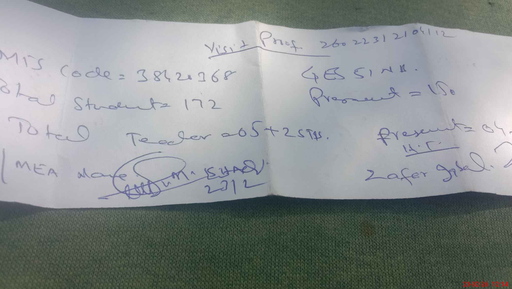 | Monitoring Date: 23-02-2026 | Start Time: 23-02-2026 11:18 AM | End Time: 23-02-2026 12:20 PM | Name of MEA: Mu**** Is**** | |