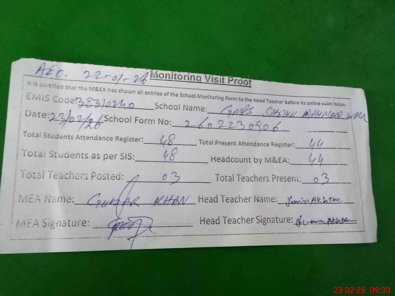 | EMIS Code: 38310240 | Name of School: GMPS SHEIKH MUSA KHEL | |||