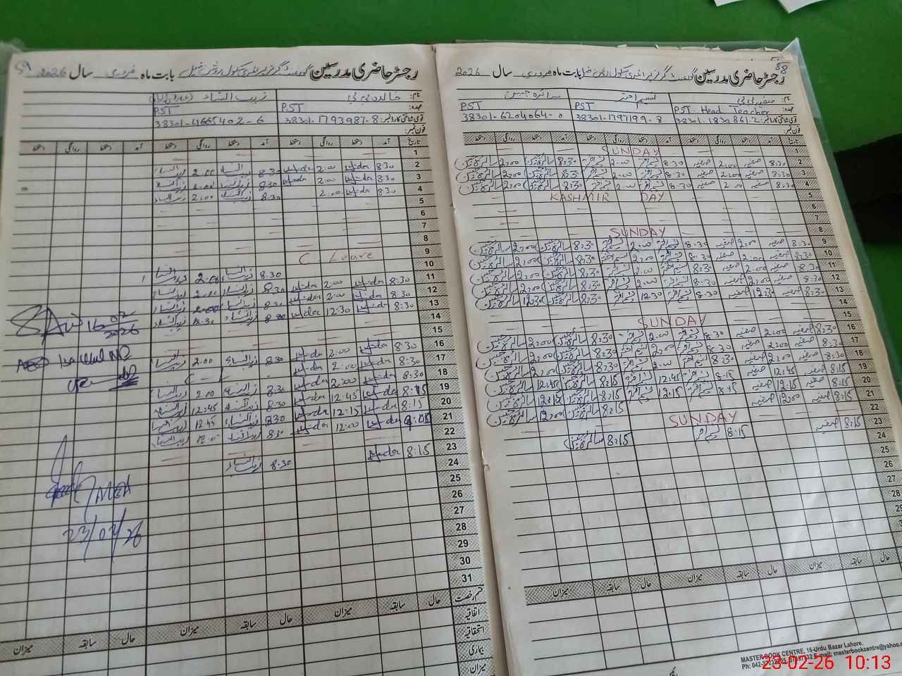 | Name: SA**** BI**** Designation: (School Headmaster's/Headmistress's) PST Phone/Cell Number: 03**** |