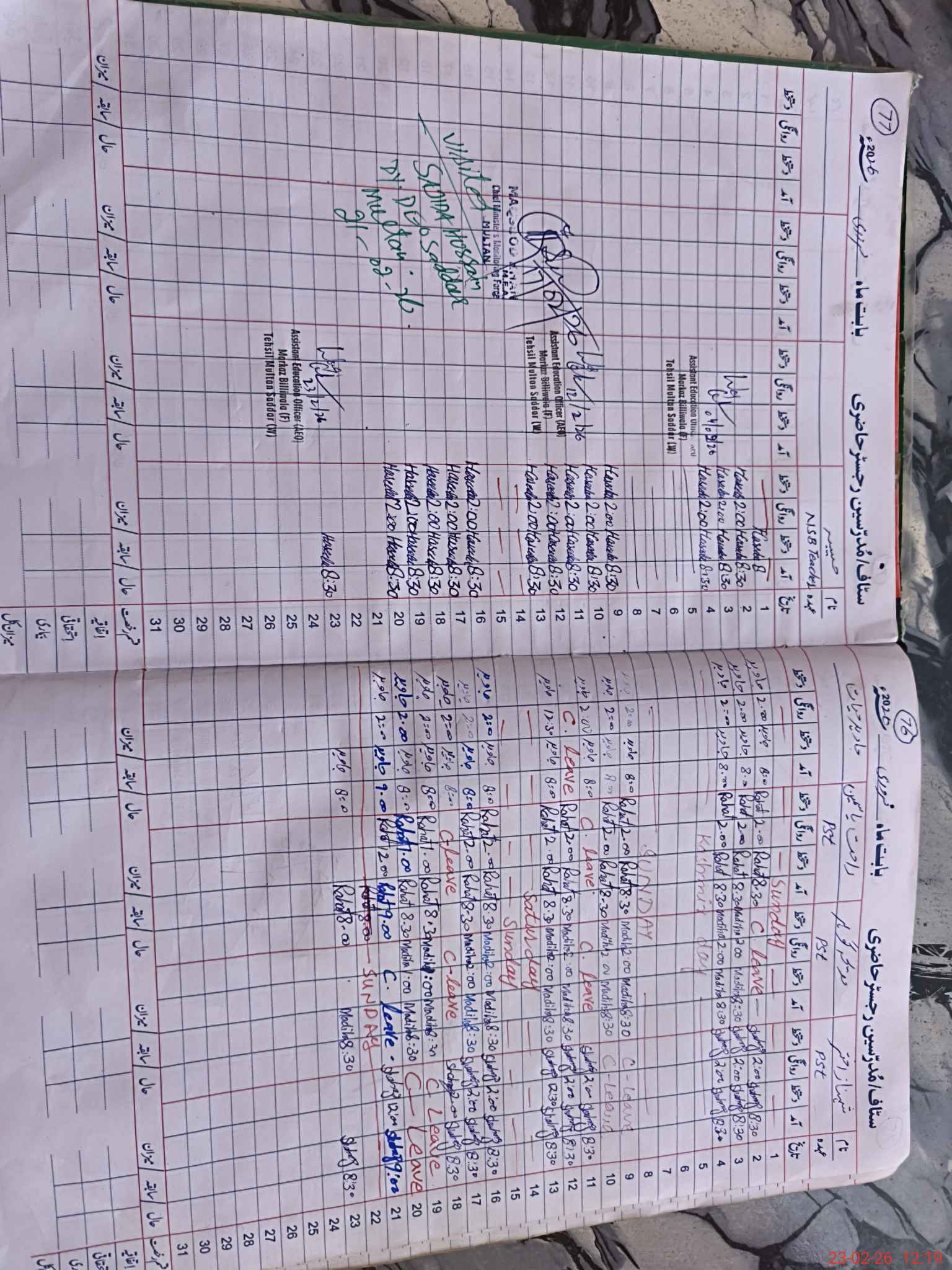 | CNIC | Full Name | Designation | R/C | Absence During Last Calender Month |