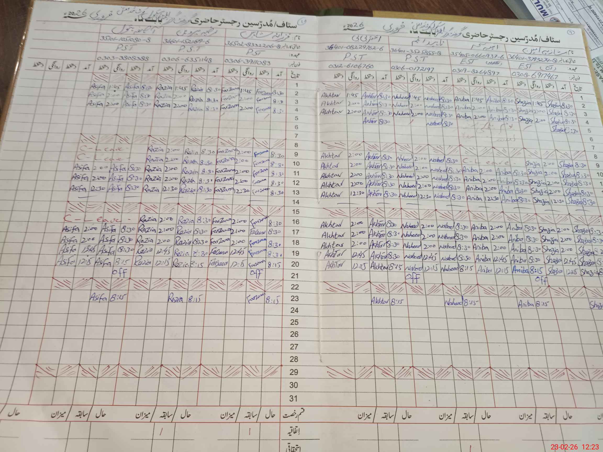 | CNIC | Full Name | Designation | R/C | Absence During Last Calender Month |