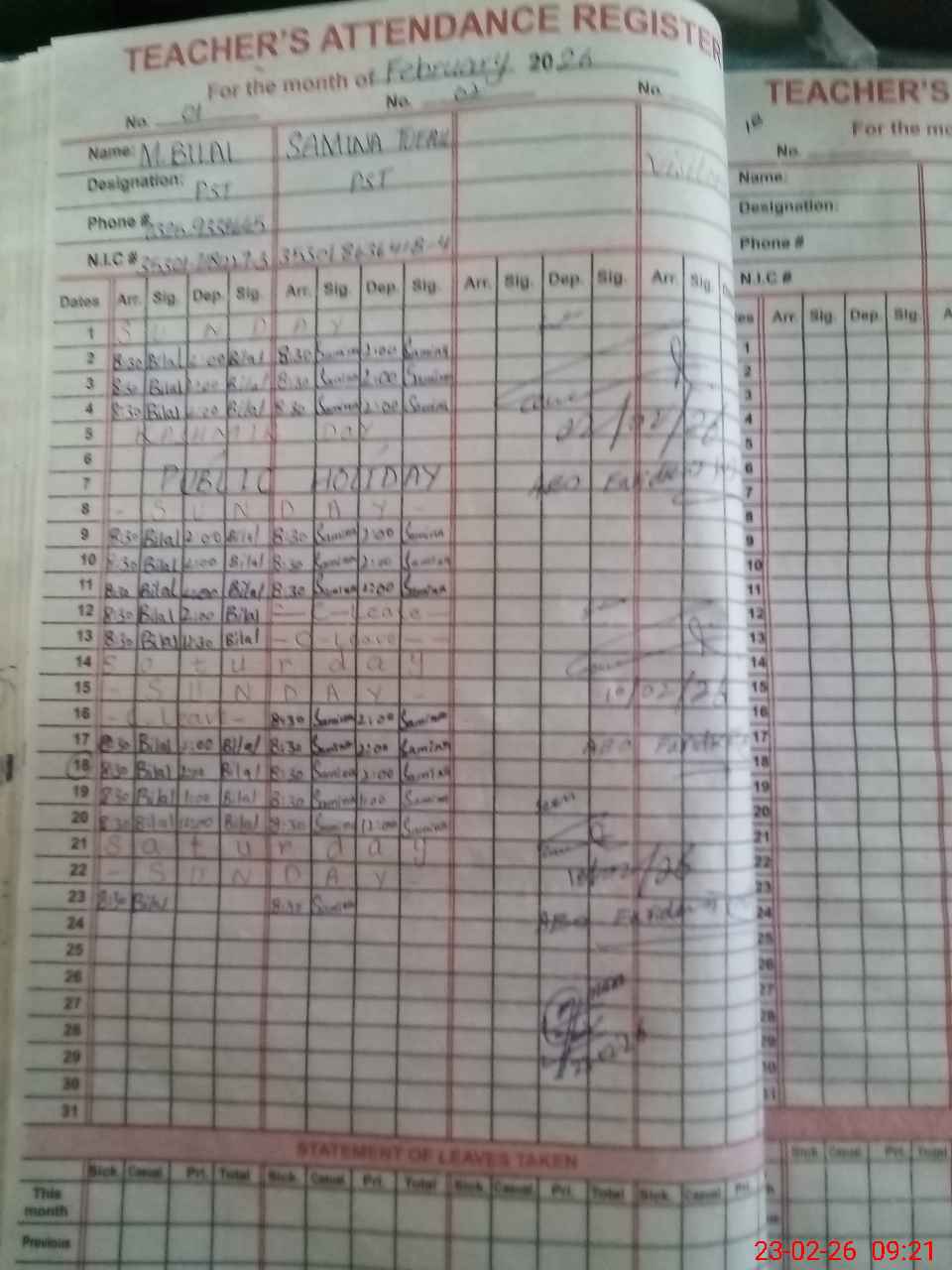 | Name: MU**** Bi**** Designation: (School Headmaster's/Headmistress's) PST Phone/Cell Number: 03**** |