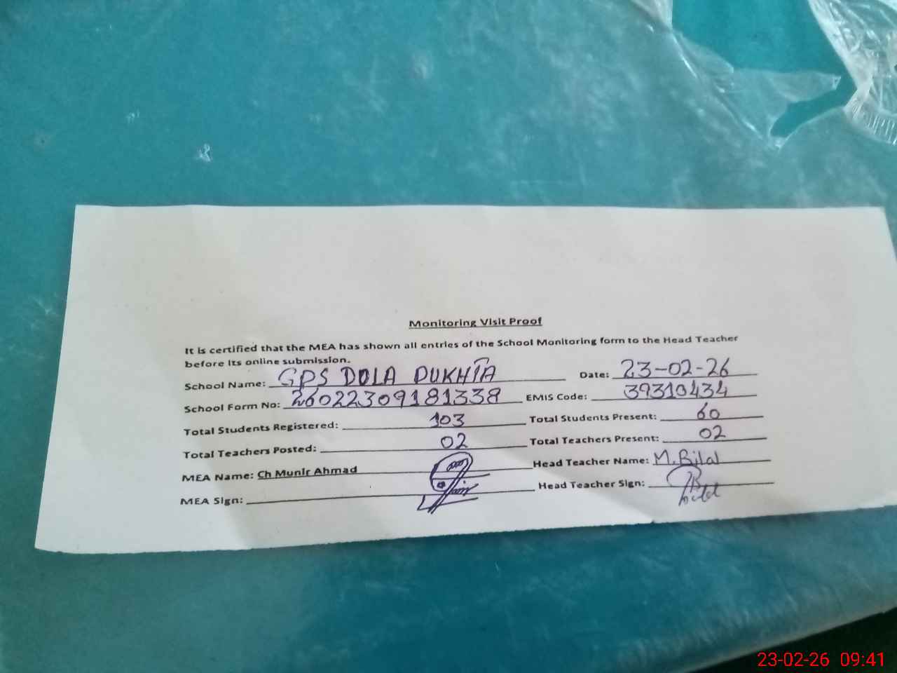 | EMIS Code: 39310434 | Name of School: GPS DAULA PUKHTA | |||