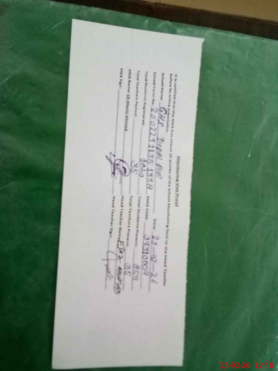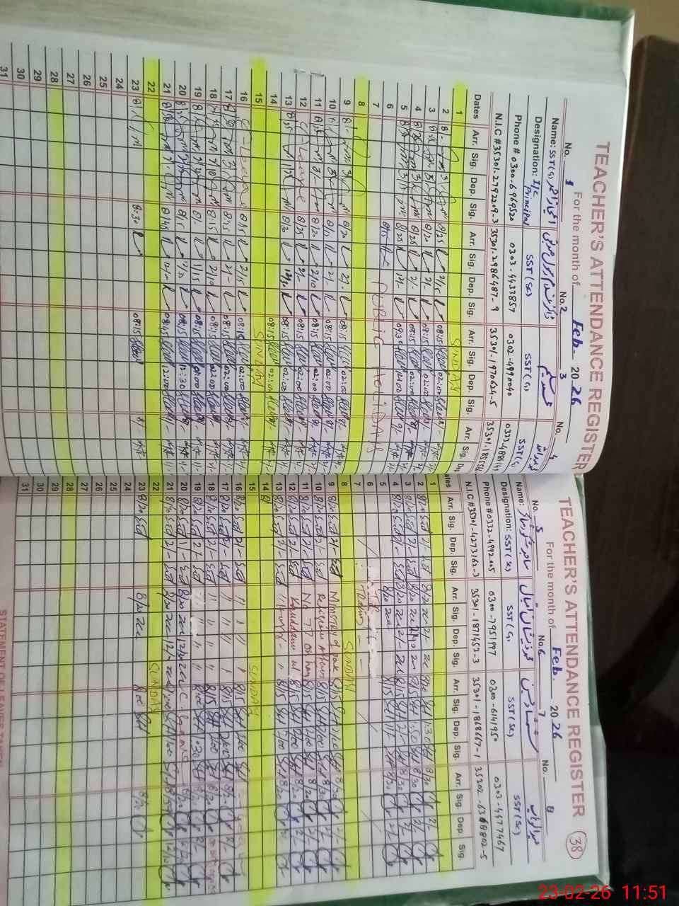 | Name: NI**** AH**** Designation: (School Headmaster's/Headmistress's) SST I/C Phone/Cell Number: 03**** |