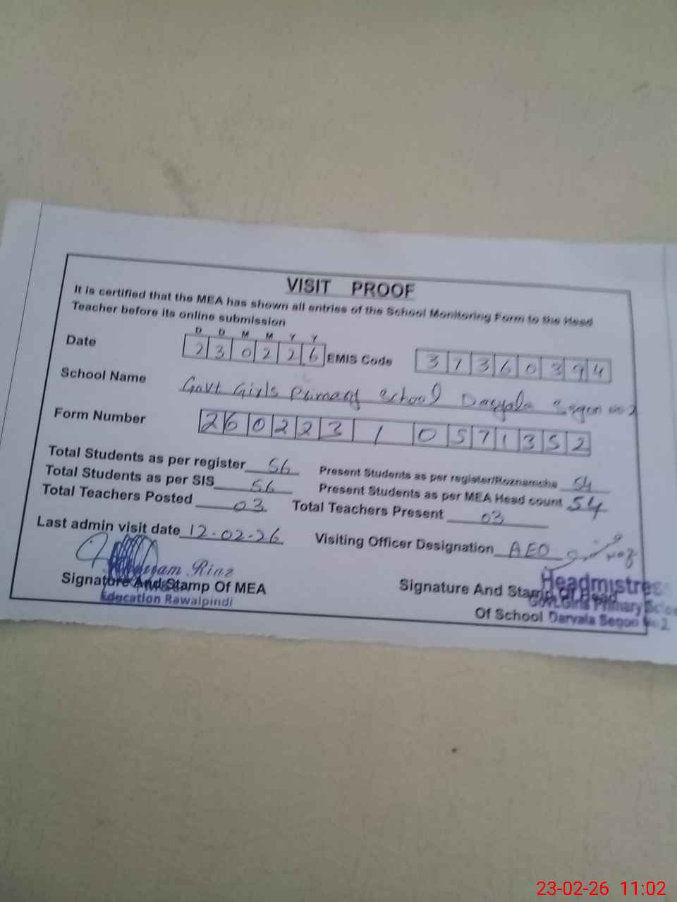 | EMIS Code: 37360394 | Name of School: GGPS DARYALA SAGON NO 2 | |||