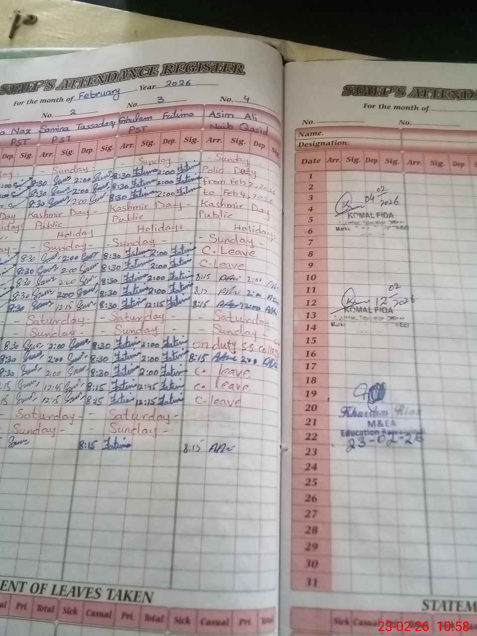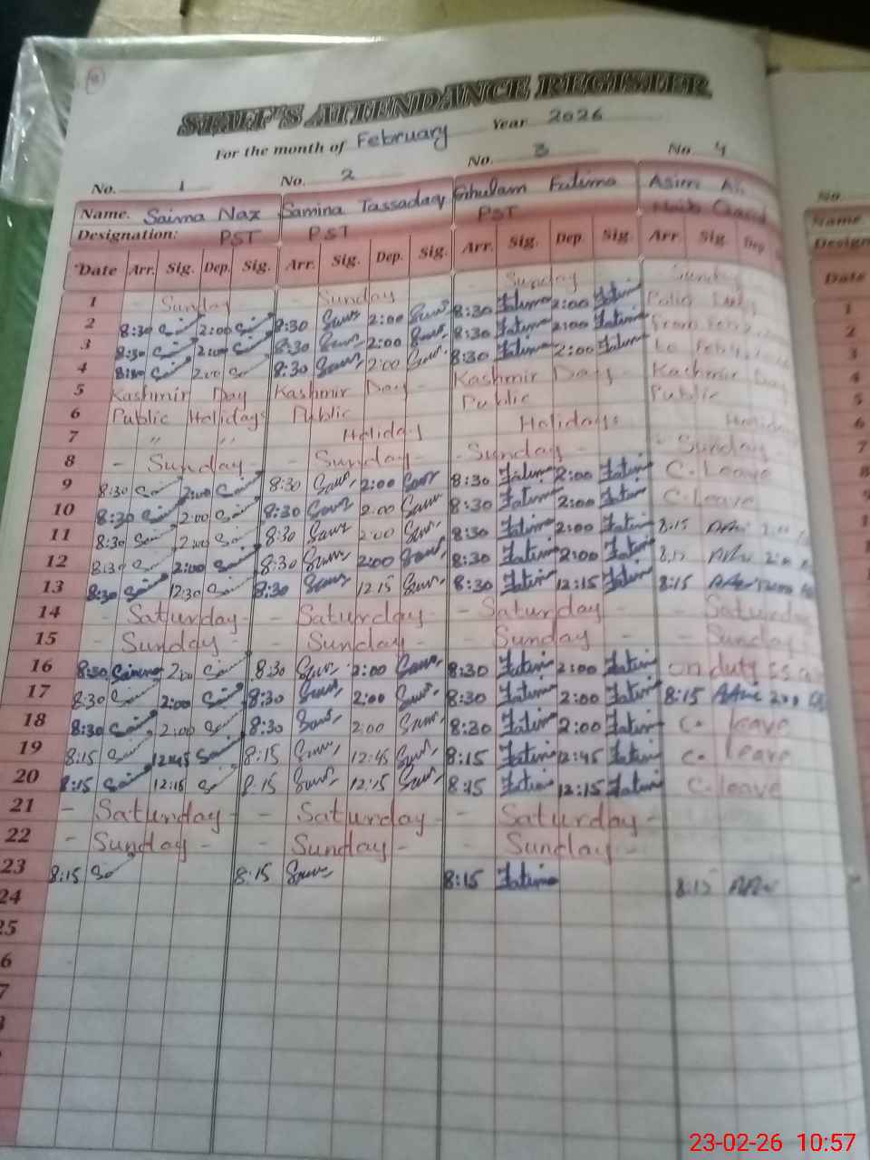 | Remarks (Use Separate Page if Required): C IV Asim Ali is also present in school he is locally attached from GGES SUI CHEMIAN | |||||