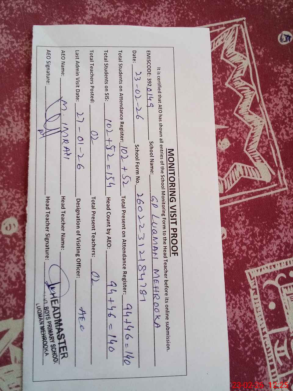 | EMIS Code: 39220149 | Name of School: GPS LUQMAN MEHRO KA | |||